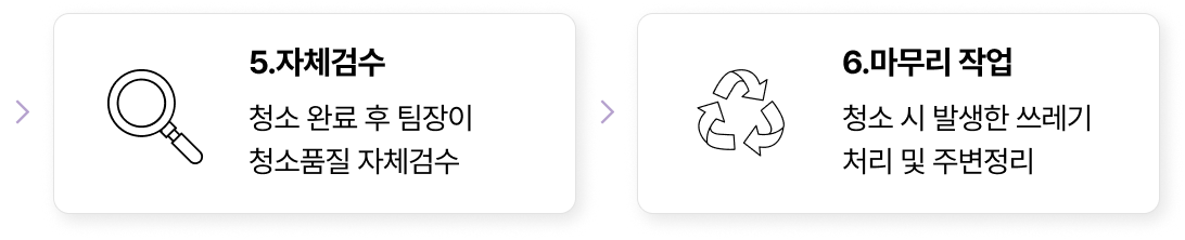 모든 현장에서 완벽함을 추구하며 최고의 품질, 최고의 청소서비스를 제공하기 위해 끊임없이 연구하고 노력하겠습니다.